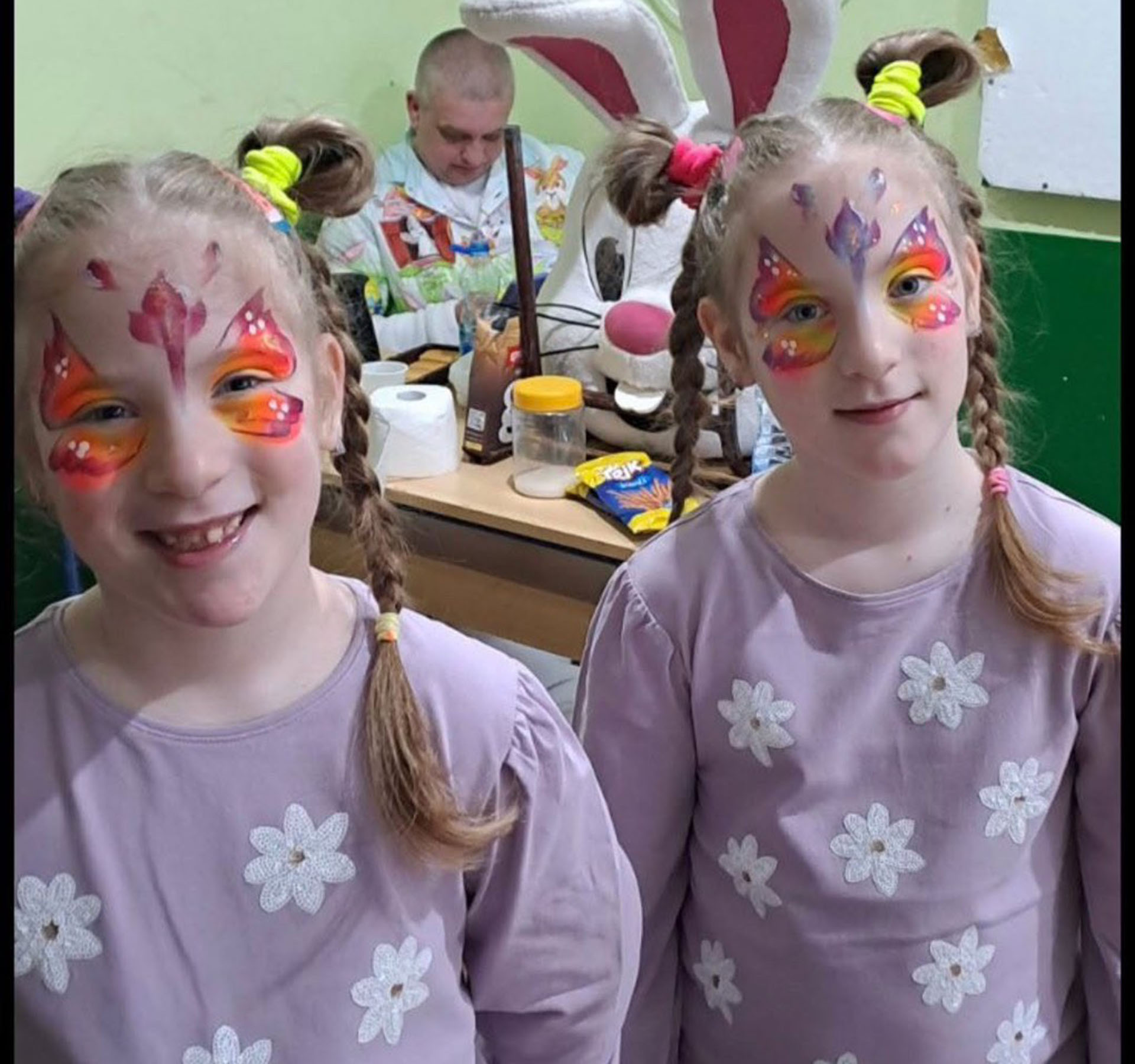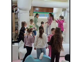 У духу предстојећег празника на базару је била и маскота ускршњег Зеке, а Урошев тата се потрудио да и маскота Стича буде на услузи деци.