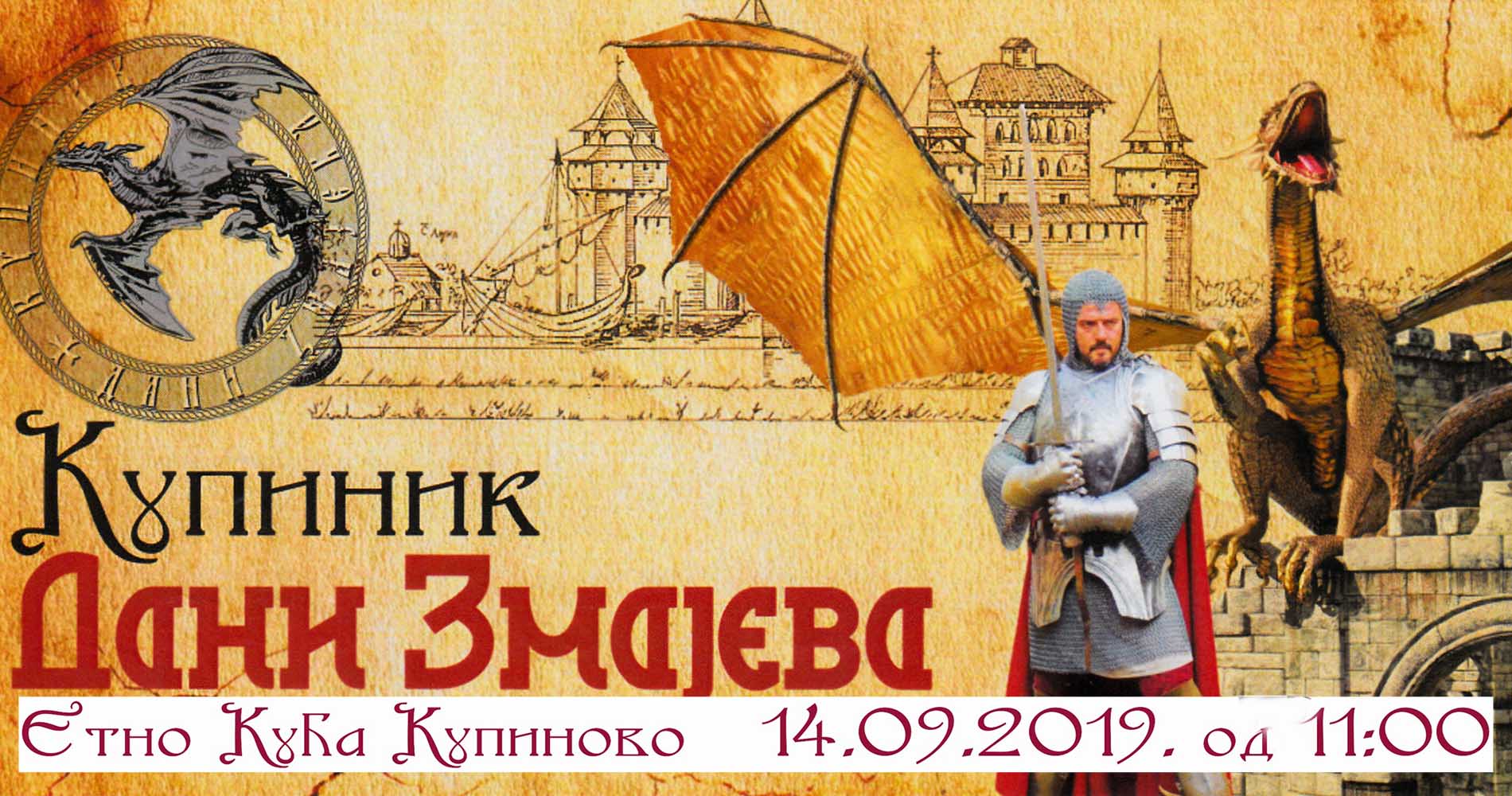 Ovogodišnji Dani zmajeva vratiće posetioce na jedan dan u atmosferu srednjeg veka nadomak poslednje prestonice srednjovekovne Srbije - tvrđave Kupinik u Kupinovu. Tokom višečasovnog programa smenjivaće se spektakularne demonstracije viteških borbi, konjičkog i pešadijskog streličarstva, koje će prirediti viteško društvo „Beli orlovi“ i članovi Konjičkog kluba „Bojčin“, a atmosferu će upotpuniti radionice kaligrafije, slikarstva, saračkih i kovačkih veština. U okviru programa biće održan i turnir u streličarstvu.