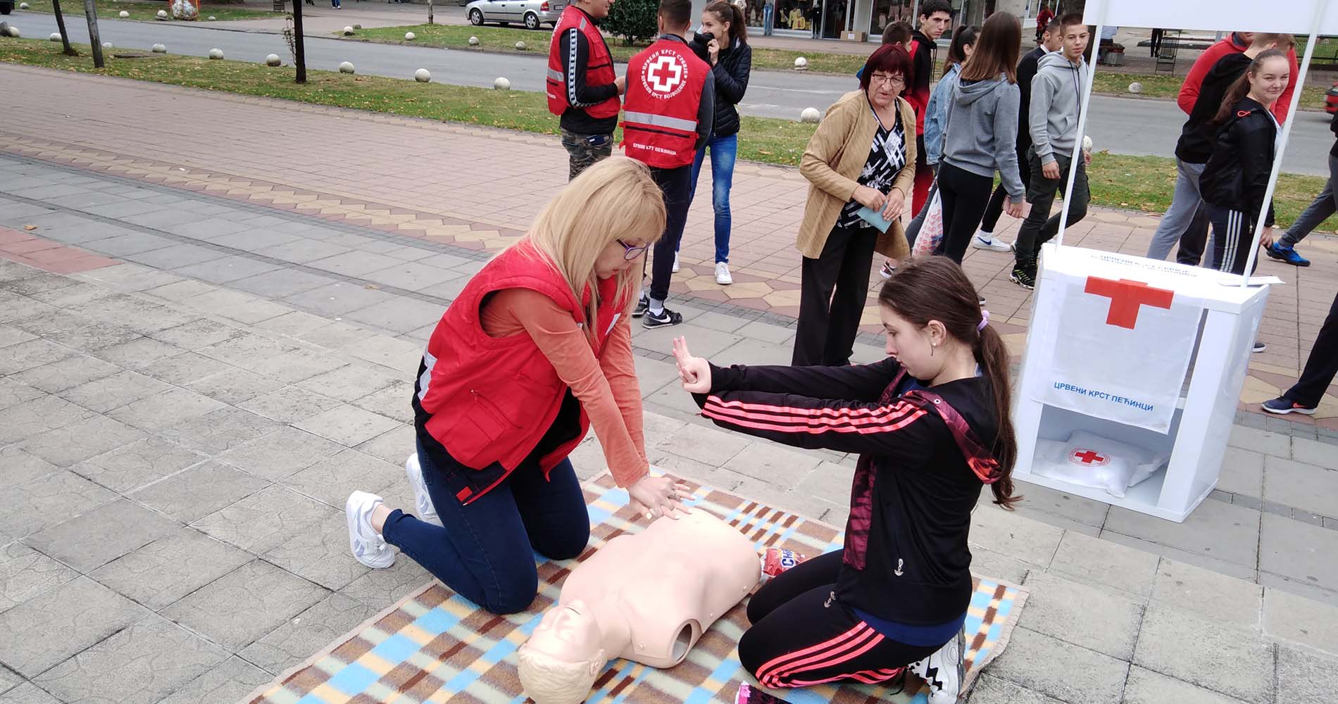 “Takođe, održali smo i promotivnu akciju na platou u centru Pećinaca, tokom koje smo demonstrirali prvu pomoć, gde su ujedno volonteri Crvenog krsta postavili štand i delili promotivni materijal. Svi zainteresovani građani mogli su da prisustvuju i aktivno se uključe u informisanje o merama prevencije povređivanja i merama prve pomoći, jer svako od nas može biti u prilici da mu je potrebna prva pomoć. U isto vreme svako od nas može i da nauči da pruži prvu pomoć” – rekla je Konjević i dodala da će Crveni krst Pećinci češće organizovati „dan otvorenih vrata“ za sve zainteresovane i na taj način učiniti dostupnim učenje prve pomoći onim građanima koji nemaju zakonsku obavezu (vozači i zaposlena lica), a žele da steknu znanje iz ove oblasti.