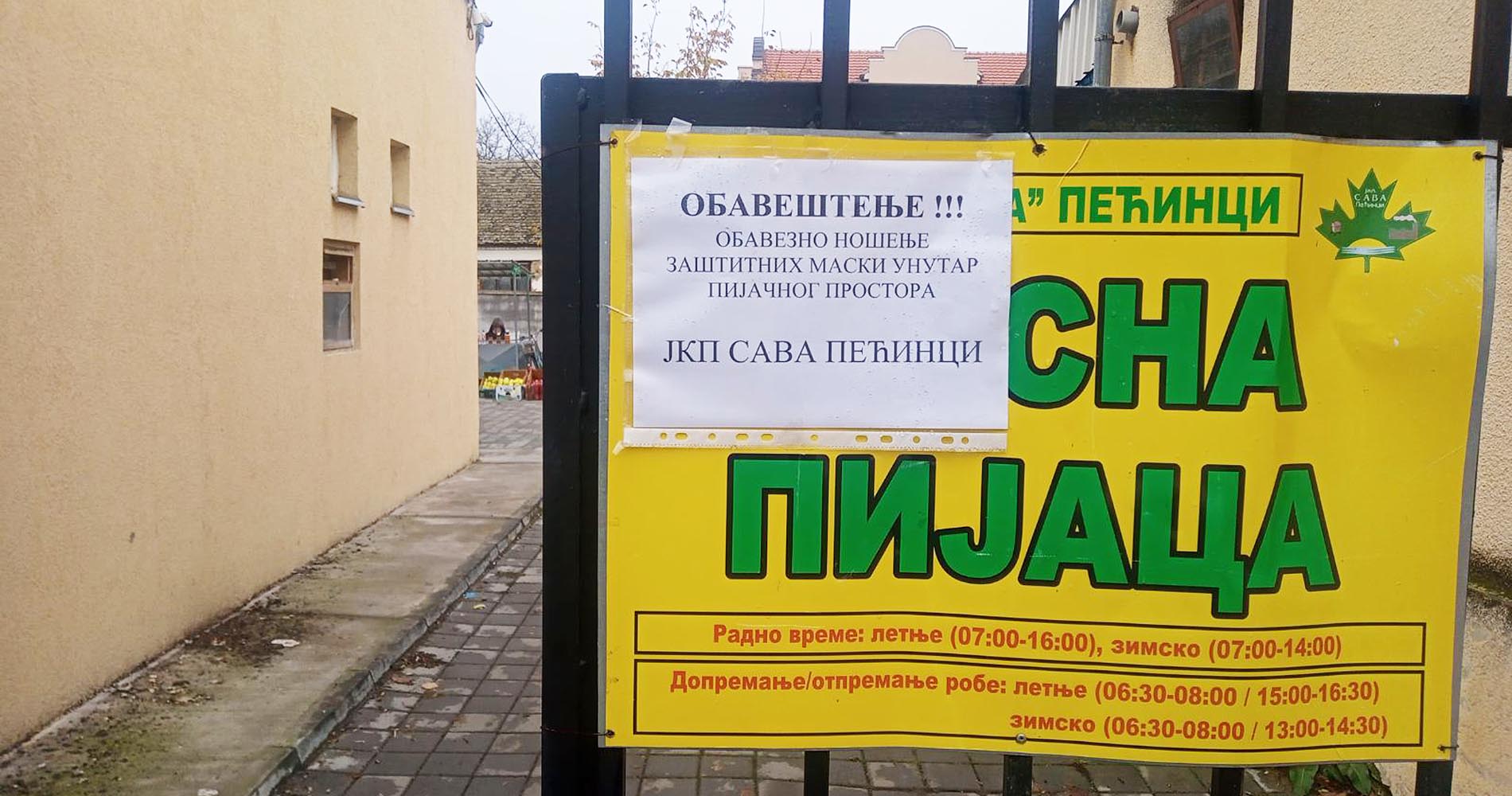 Kako je saopštilo pećinačko Javno komunalno preduzeće “Sava” od danas su na ulasku u mesne pijace u Pećincima i Šimanovcima postavljene nove dezinfekcione barijere, kao i obaveštenje da je unutar pijačnog prostora obavezno nošenje zaštitnih maski.