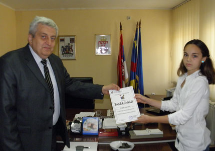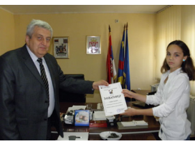Predsednik Skupštine opštine Pećinci Nikola Radosavljević je 31. maja primio trinaestogodišnju Sofiju Simović iz Deča i njenog oca Đorđa i tom prilikom je Sofiji uručio Zahvalnicu za promociju opštine kroz izuzetno zalaganje i zavidne sportske rezultate u karateu, monografiju „Srbija od zlata jabuka“ i fleš memoriju.