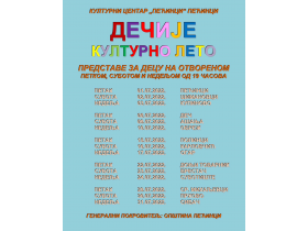 Kulturni centar Pećinci pod pokroviteljstvom pećinačke lokalne samouprave i ove godine organizuje Dečje kulturno leto, koje će biti održano od 1. do 31. jula u svih 15 naselja.
