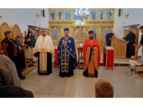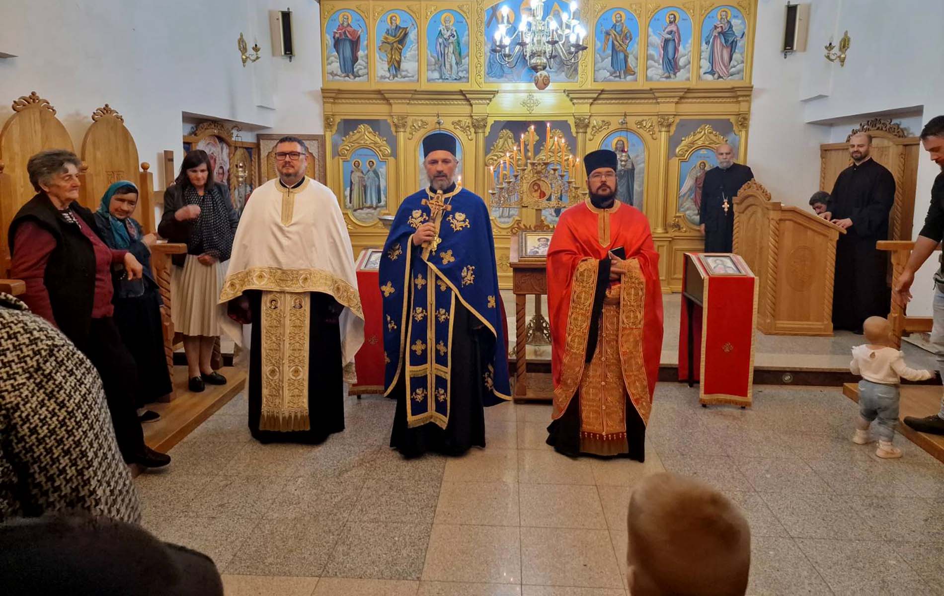 Večernje bogosluženje služio je arhimandrit Atanasije, iguman manastira Staro Hopovo, uz sasluženje jeromonaha Atanasija i protojereja Mića Ristića.