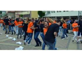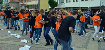 Tačno u podne maturanti su zaplesali uz muziku Johana Štrausa "Slepi mis" istu koreografiju kao i njihove kolege širom Evrope.