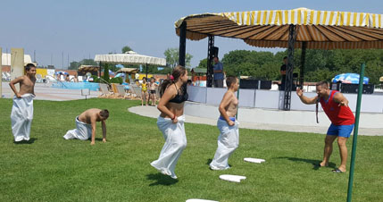 Za najmlađe su organizovane zanimljive sportske igre kao što su trka u džakovima i muzičke stolice u kojima je učestvovalo petnaestak posetilaca bazena uzrasta do 4. razreda osnovne škole.
