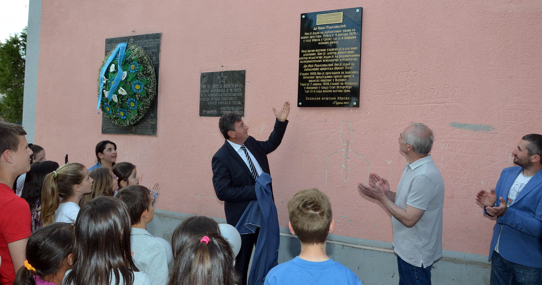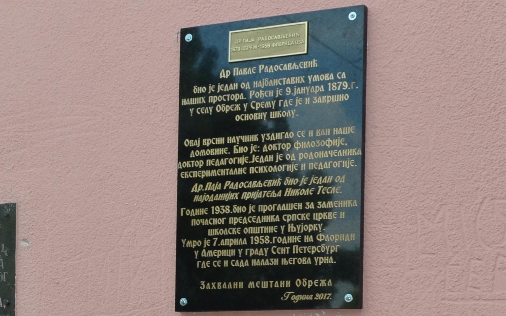 “Pavle Paja Radosavljević, kao veliki srpski naučnik koji je potekao iz ovog mesta, zaslužuje da ima spomen ploču u Obrežu i zaslužuje da meštani Obreža nikada ne zaborave svog znamenitog sugrađanina. Ova spomen ploča je s razlogom postavljena upravo na zgradi škole, gde će budućim generacijama učenika biti podsećanje na to da vrednim radom i učenjem nema granica uspehu koji mogu da postignu” – istakao je Trbović, koji se ujedno i zahvalio Zlatomiru Ćiriću, vlasniku kamenorezačke radionice “Faraon” iz Subotišta, koji je donirao spomen ploču.