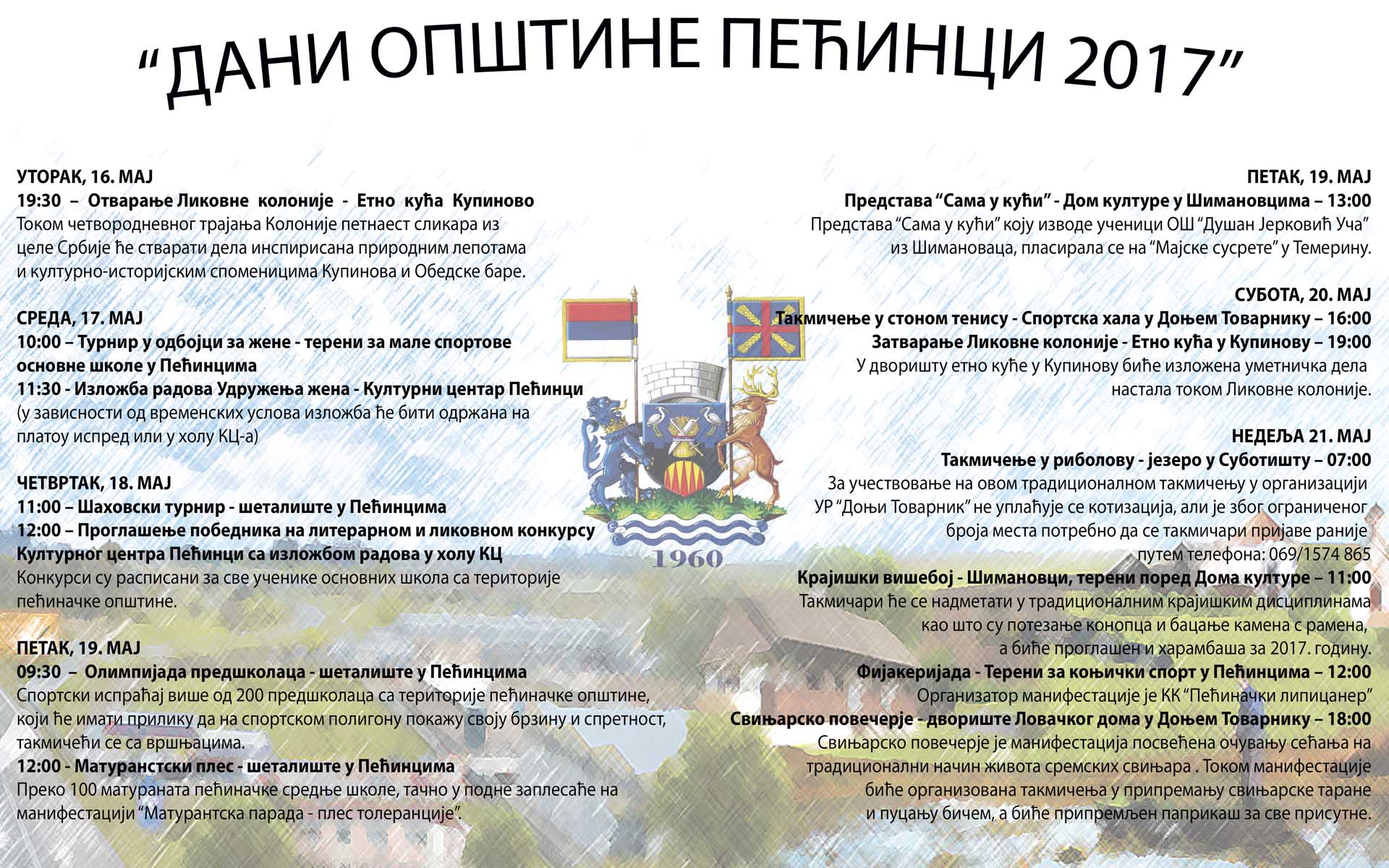 Dan opštine Pećinci 22. maj, Sveti Nikola letnji, biće i ove godine obeležen čitavim nizom kulturnih i sportskih manifestacija od 16. do 22. maja. Obeležavanje Dana opštine počinje u utorak, 16. maja, svečanim otvaranjem IX Likovne kolonije u Kupinovu, a završava se u ponedeljak, 22. maja, svečanom sednicom Skupštine opštine Pećinci.