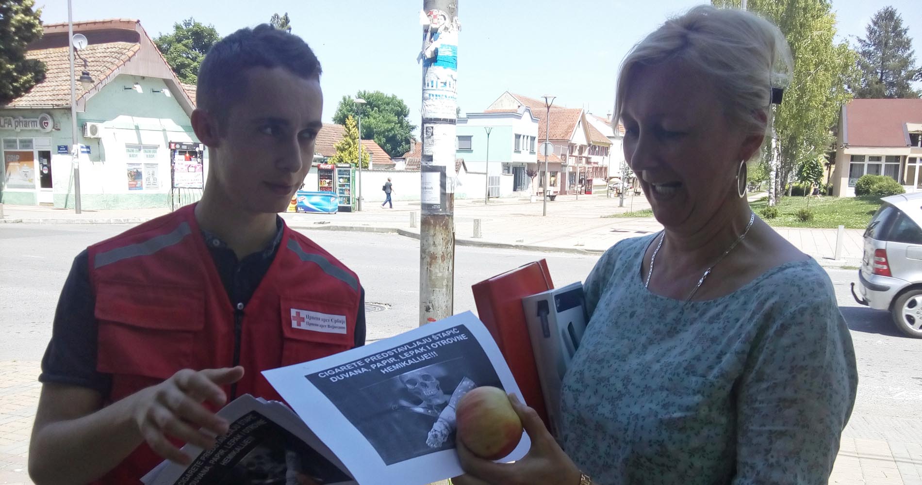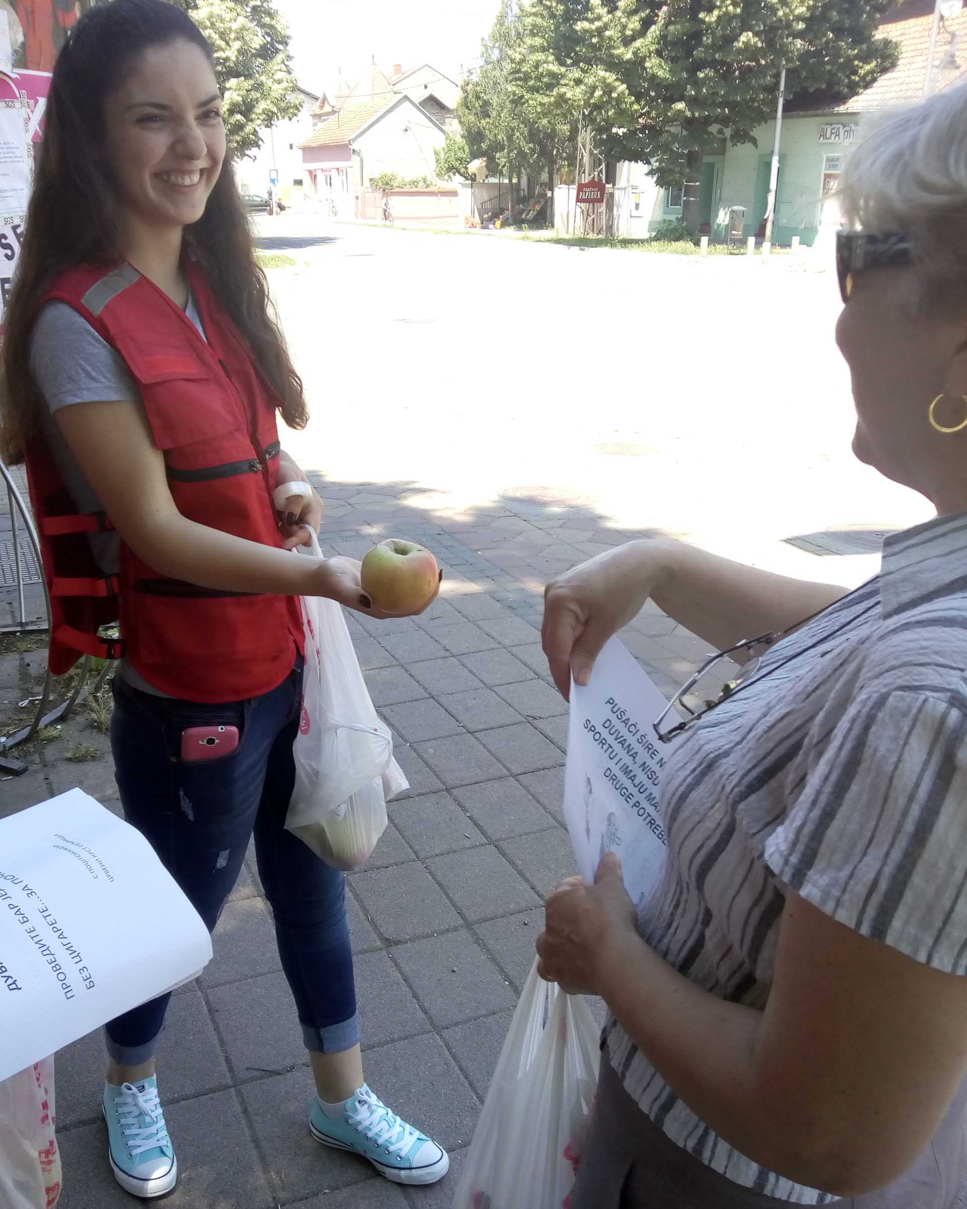 “Istovremeno, naši volonteri su na javnim mestima postavili plakate na temu prevencije zavisnosti od duvanskog dima, delili edukativni materijal i poklanjali prolaznicima jabuke. Prolaznici su pozitivno reagovali na našu akciju i mnogi od njih su podržali ovakvu vrstu preventivnog delovanja. Nadamo se da smo bar neke od pušača podstakli na donošenje odluke o prestanku pušenja, čime smo ih lišili neminovnih zdravstvenih tegoba koje uzrokuje pušenje, a možda smo spasli bar jedan ljudski život” – izjavio je nakon akcije Aleksandar Andrijević, stručni saradnik u pećinačkom Crvenom krstu.