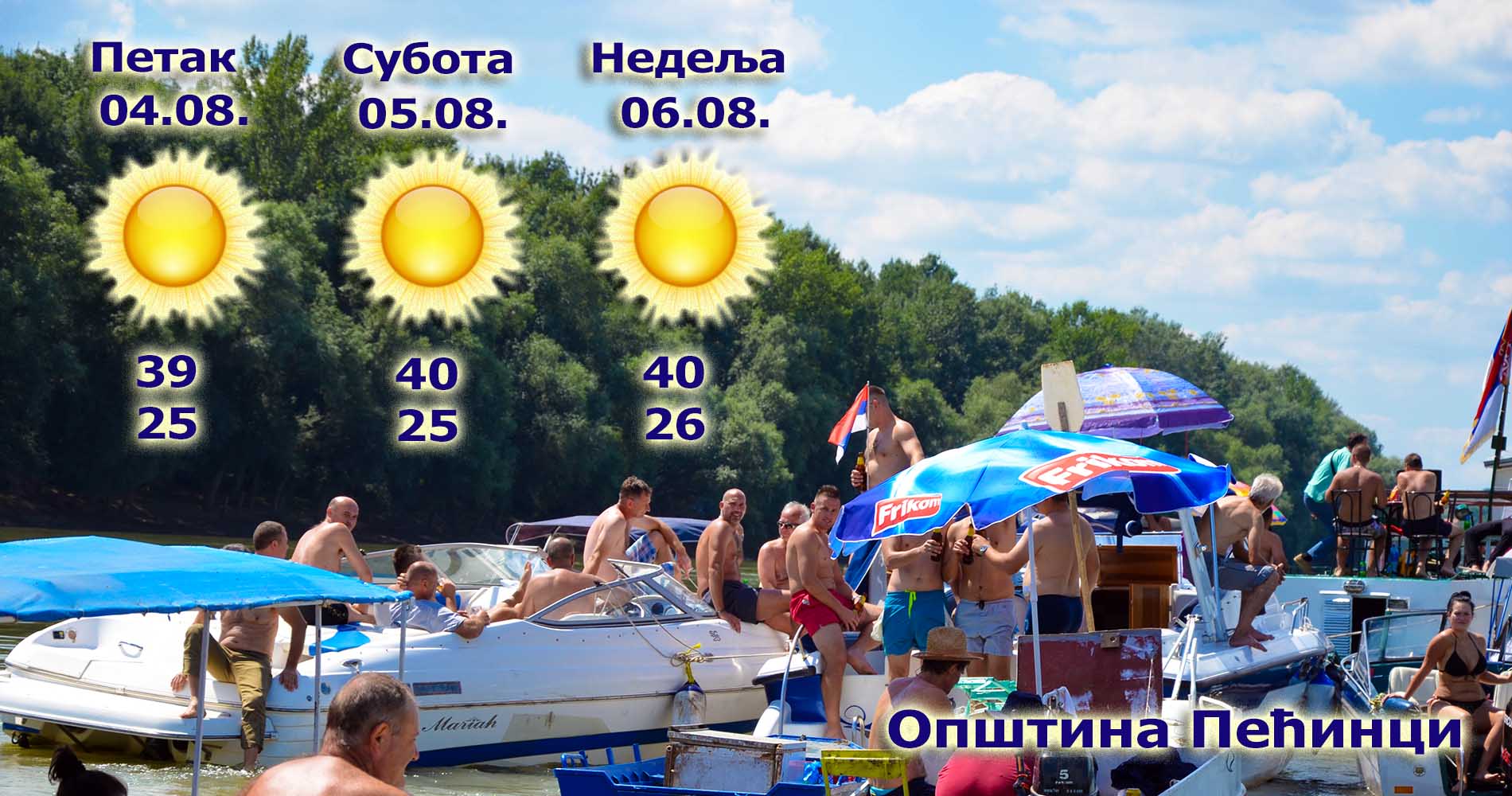 Dnevna temperatura kretaće se od 35 do 40 stepeni, za vikend i do 41 stepen, a građani opštine Pećinci spas od tropskih vrelina ovih dana će potražiti na bazenima i na Regati Majke Angeline, koja isplovljava u subotu u 10 časova.