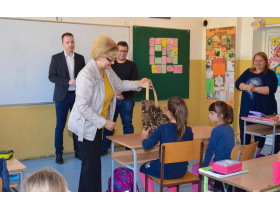 Đaci prvaci sve tri osnovne škole sa teritorije opštine Pećinci danas su dobili još jedan poklon povodom polaska u prvi razred. Higijenske pakete i pakete školskog pribora, uz pomoć donatora, obezbedio je Crveni krst Vojvodine, a prvake je u Osnovnoj školi „Slobodan Bajić Paja“ u Pećincima poklon paketima obradovala Gordana Konjević ispred pećinačkog Crvenog krsta.
