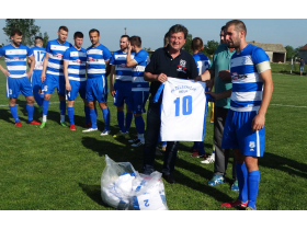 Pred oko 200 gledalaca i prvog zvužduka sudije Vladimira Blažona iz Rume, predsednik pećinačke opštine Željko Trbović i predsednik FK „Sloboda“ Milan Aleksić, uručili su kapitenu Dejanu Katariću komplet dresova sa ekipu Železničara, kao znak gostoprimstva i sportskog prijateljstva, ne samo dva kluba, već i dve opštine - slično je bilo jesenas u Inđiji, kada je predsednik inđijske opštine Slobodi poklonio opremu.