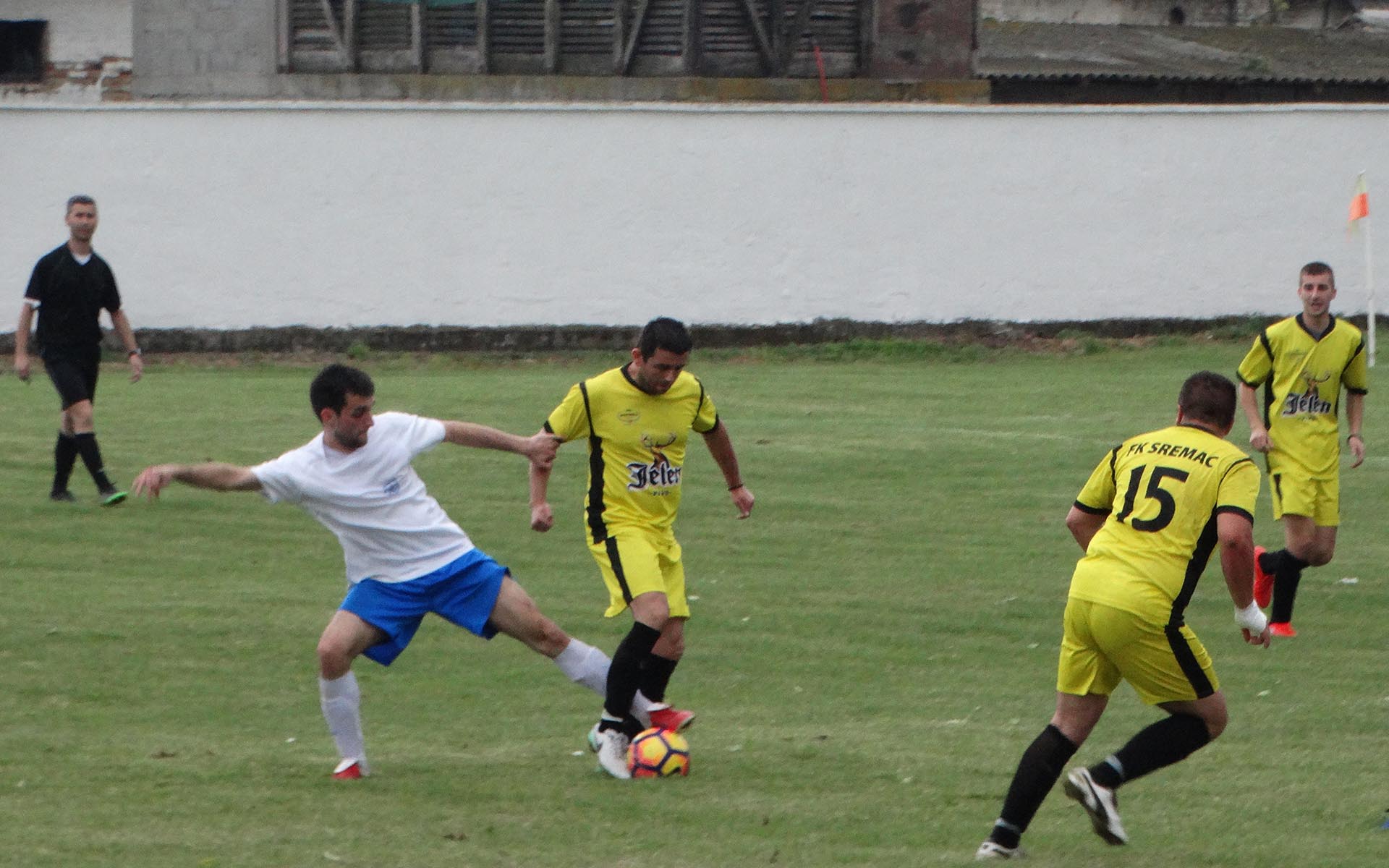 Na samom startu utakmice Šimanovčani su imali osetnu prednost i nakon svega par minuta igre rezultat je bio 1:0. Ignjatović je lepo proigrao Stefana Đokovića, koji je akciju okončao na najbolji način – golom. To je bilo u 4. minut. Isti igrač je samo minut kasnije povisio na 2:0: jednostavno, najbolje se snašao pred golom Sremca. Vođstvo domaćina nije baš previše deprimiralo goste, koji u 36. minutu, preko Devrnje smanjuju rezultat na 2:1. To je, ujedno bio i rezultat prvih 45. minuta.