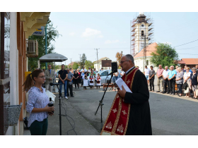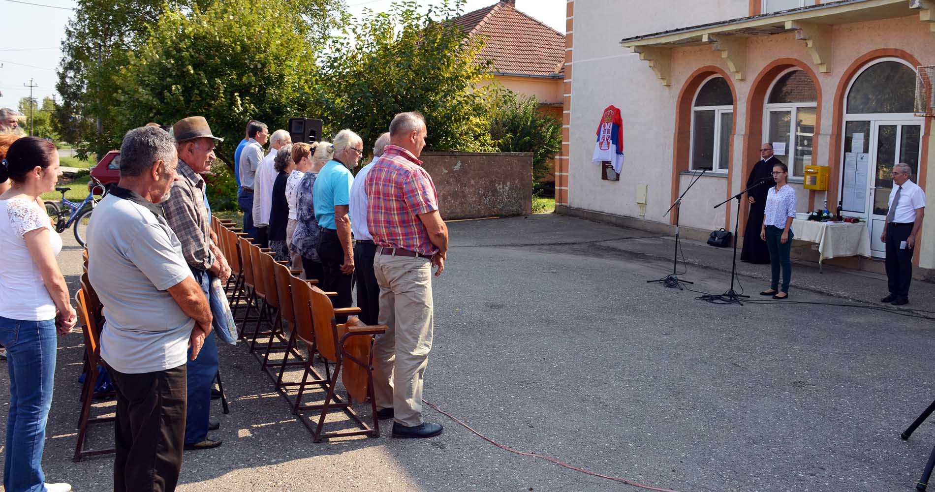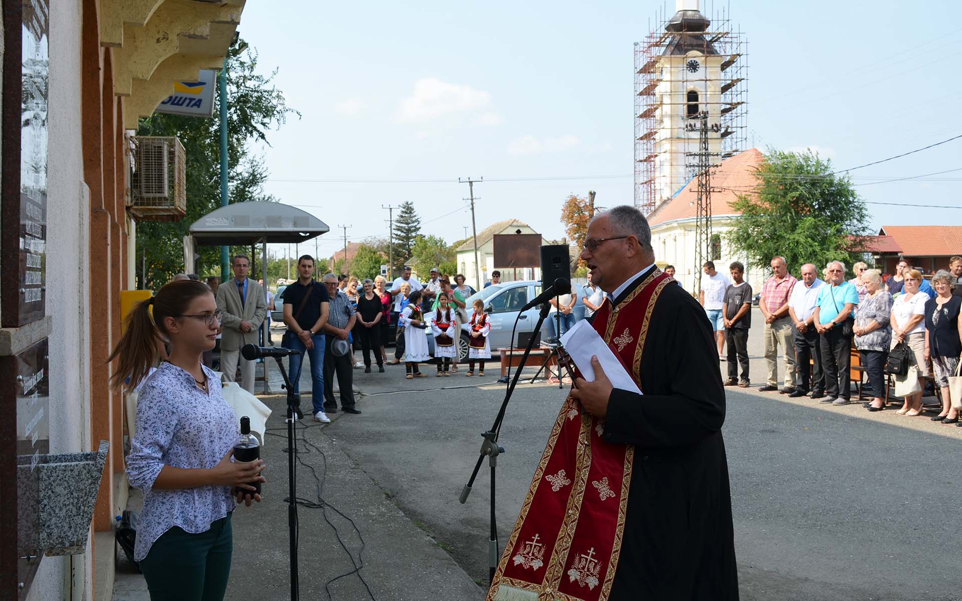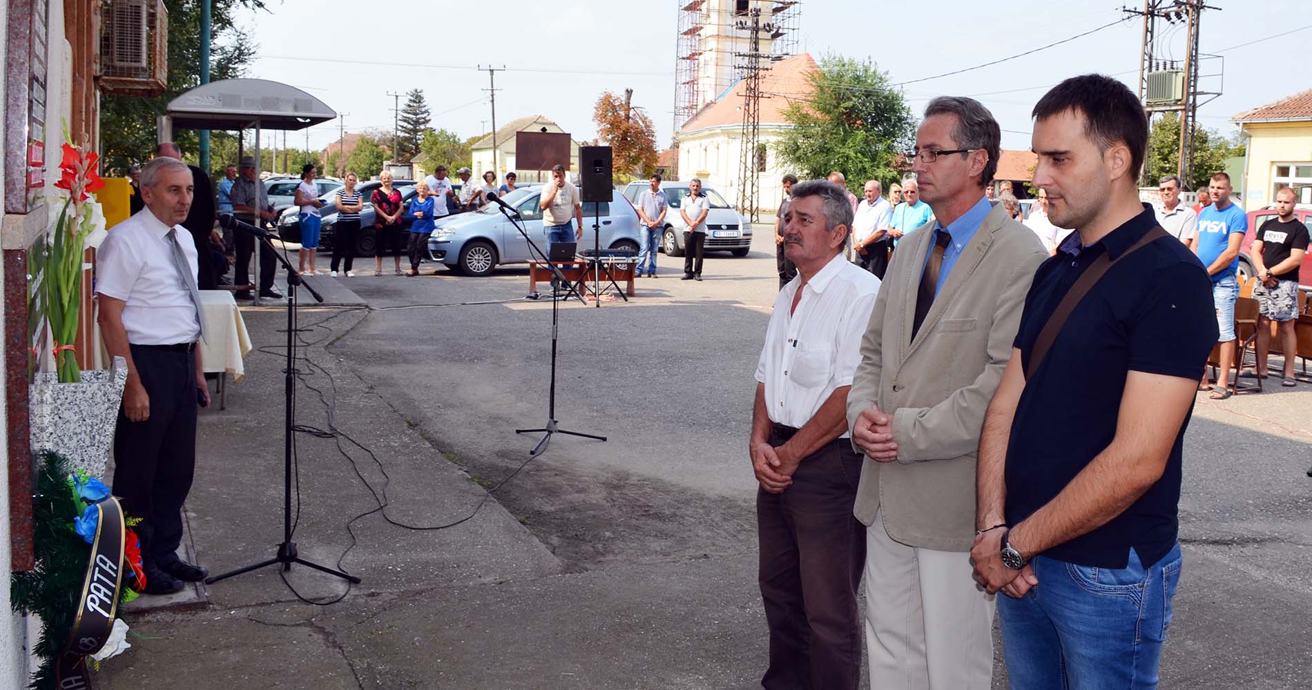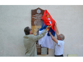 Mesni paroh Tomislav Kojić osveštao je spomen-ploču, nakon čega su na nju venac položili Predrag Puzić, Marko Sretković i Milorad Stojaković, član Inicijativnog odbora.