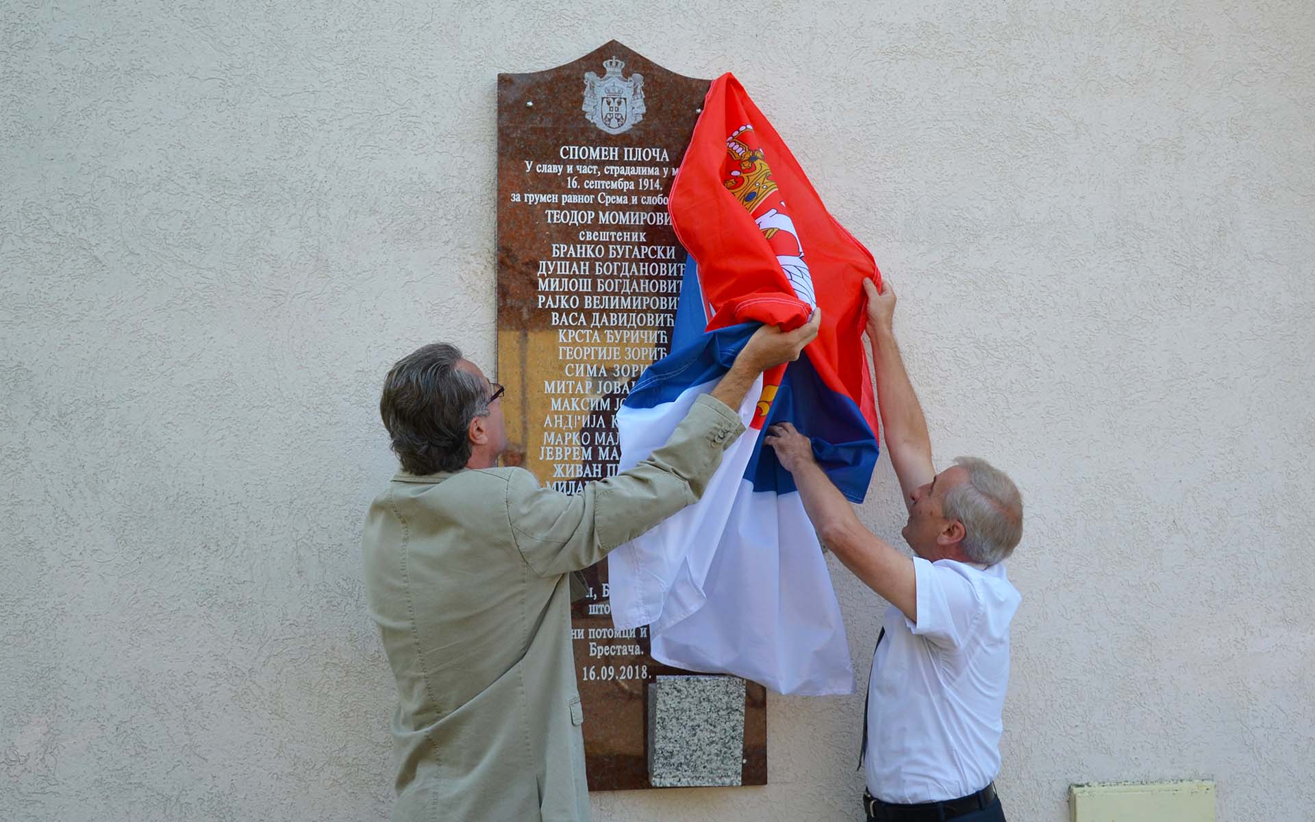 Predrag Puzić, autor tri knjige o Brestaču i počasni građanin Brestača, održao je pravi mali čas istorije u kojem je podsetio kako su neprijateljski vojnici na brutalan način ubili i spalili sedamnaest brestačkih civila, samo zato što su učestvovali u svečanom dočeku srpske vojske, koja je prodrla u Srem posle poraza austrougarske vojske na Ceru. Po povratku na ovu teritoriju austrougarski soldati su počinili brojne zločine nad civilnim stanovništvom u 35 sremskih naselja, a tog 16. septembra 1914. godine, u Brestaču su zverski ubili i spalili sveštenika Teodora Momirovića, opštinskog činovnika Vasu Davidovića i meštane Branka Bugarskog, Dušana i Miloša Bogdanovića, Rajka Velimirovića, Krstu Đuričića, Georgija i Simu Zorića, Mitra Jovanovića, Maksima Jovičića, Andriju Krnjulca, Marka i Jevrema Maleševića, Živana Petrovića, Milana Romanovića i Milana Cvetkovića. Najstariji od njih imao je 65, a najmlađi samo 21 godinu.