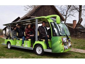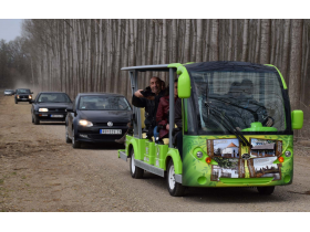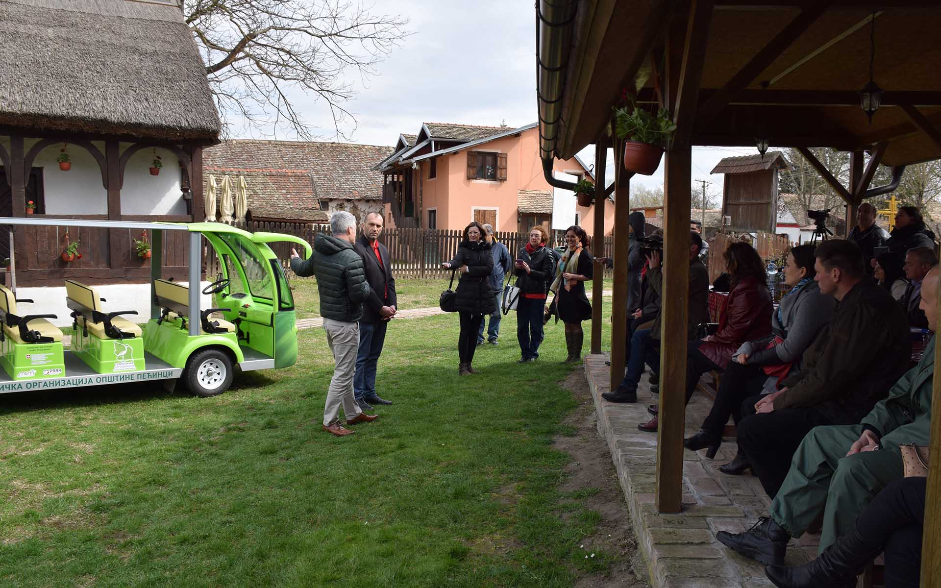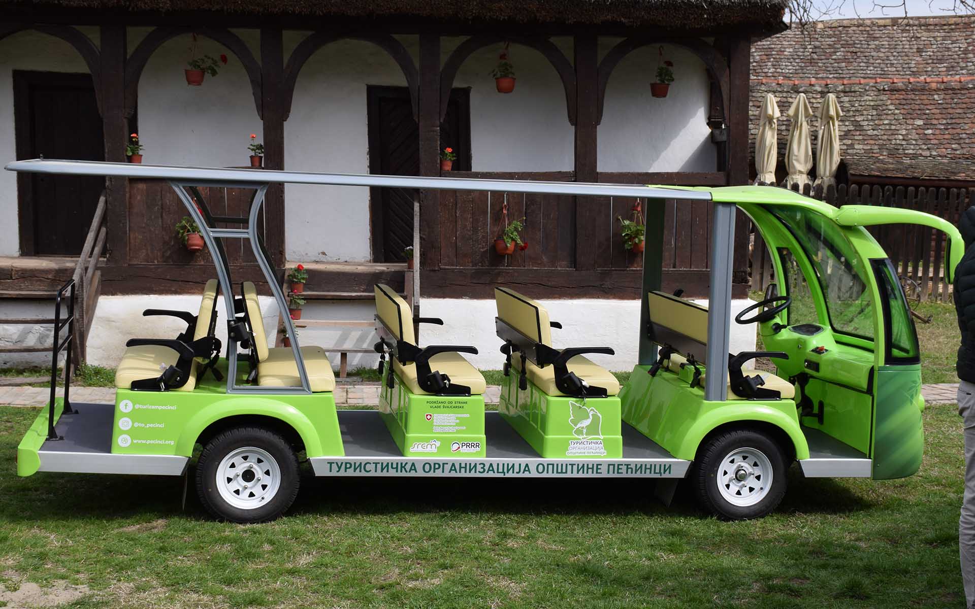 Turistička organizacija opštine Pećinci je električni minibus dobila u okviru programa „Podrška regionalnom i ruralnom razvoju u Srbiji (2015-2019)“ koji finansira Švajcarska agencija za razvoj i saradnju (SDC) i projekta „Cikloturizmom ka ruralnom i regionalnom razvoju Srema“ na kojem je vodeći partner bila Regionalna razvojna agencija Srem (RRA Srem).