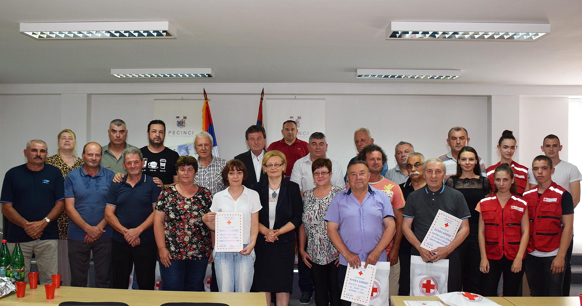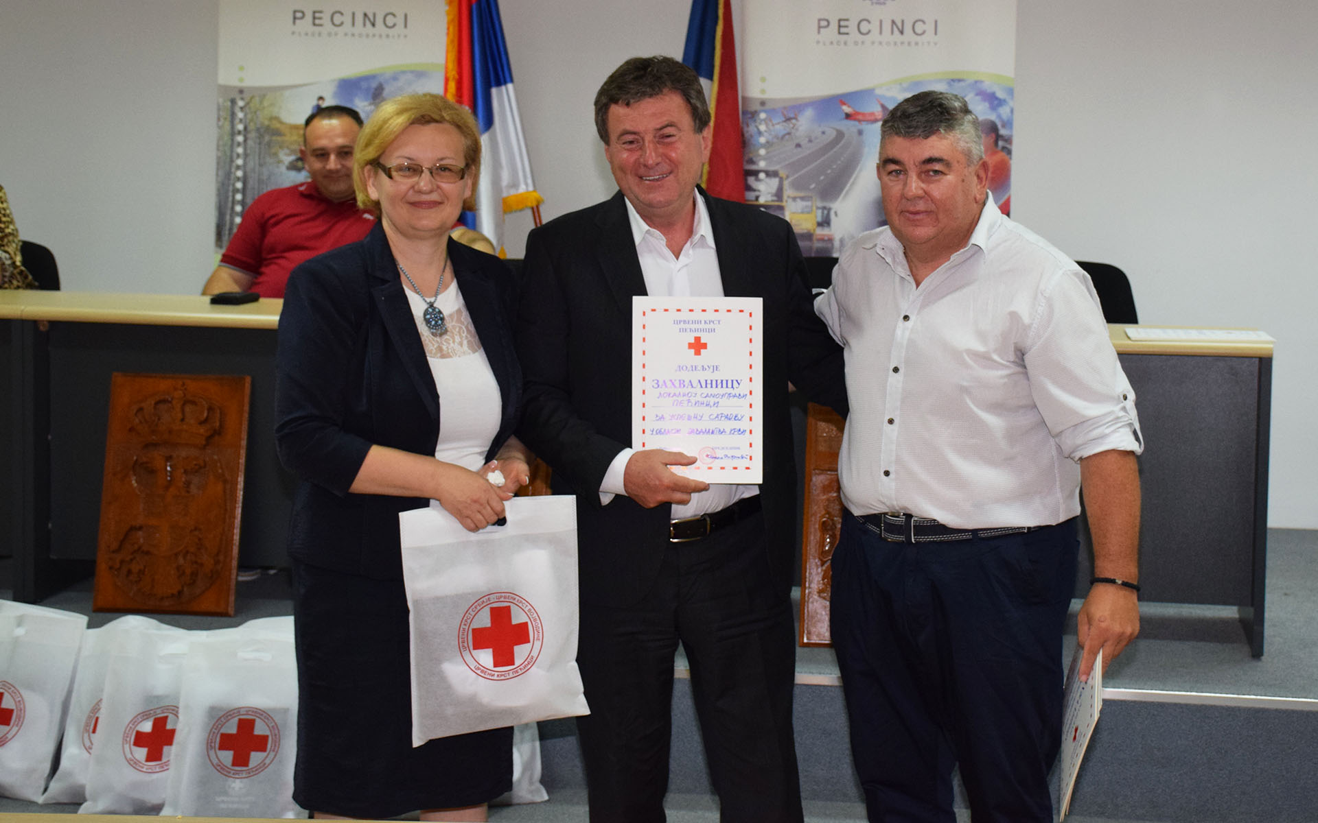 Crveni krst Pećinci je zahvalnice za uspešnu saradnju u oblasti dobrovoljnog davalaštva dodelio Kulturnom centru Pećinci, Tehničkoj školi “Milenko Verkić Neša” u Pećincima, Osnovnoj školi „Dušan Vukasović Diogen“ iz Kupinova, lokalnom radiju „Donji Srem“ Pećinci, pećinačkoj lokalnoj samoupravi, kao i volonterki Marini Rajić za istaknuti volonterski rad u dobrovoljnom davalaštvu krvi, a zahvalnice je uručio Željko Ćirković predsednik Skupštine pećinačkog Crvenog krsta.