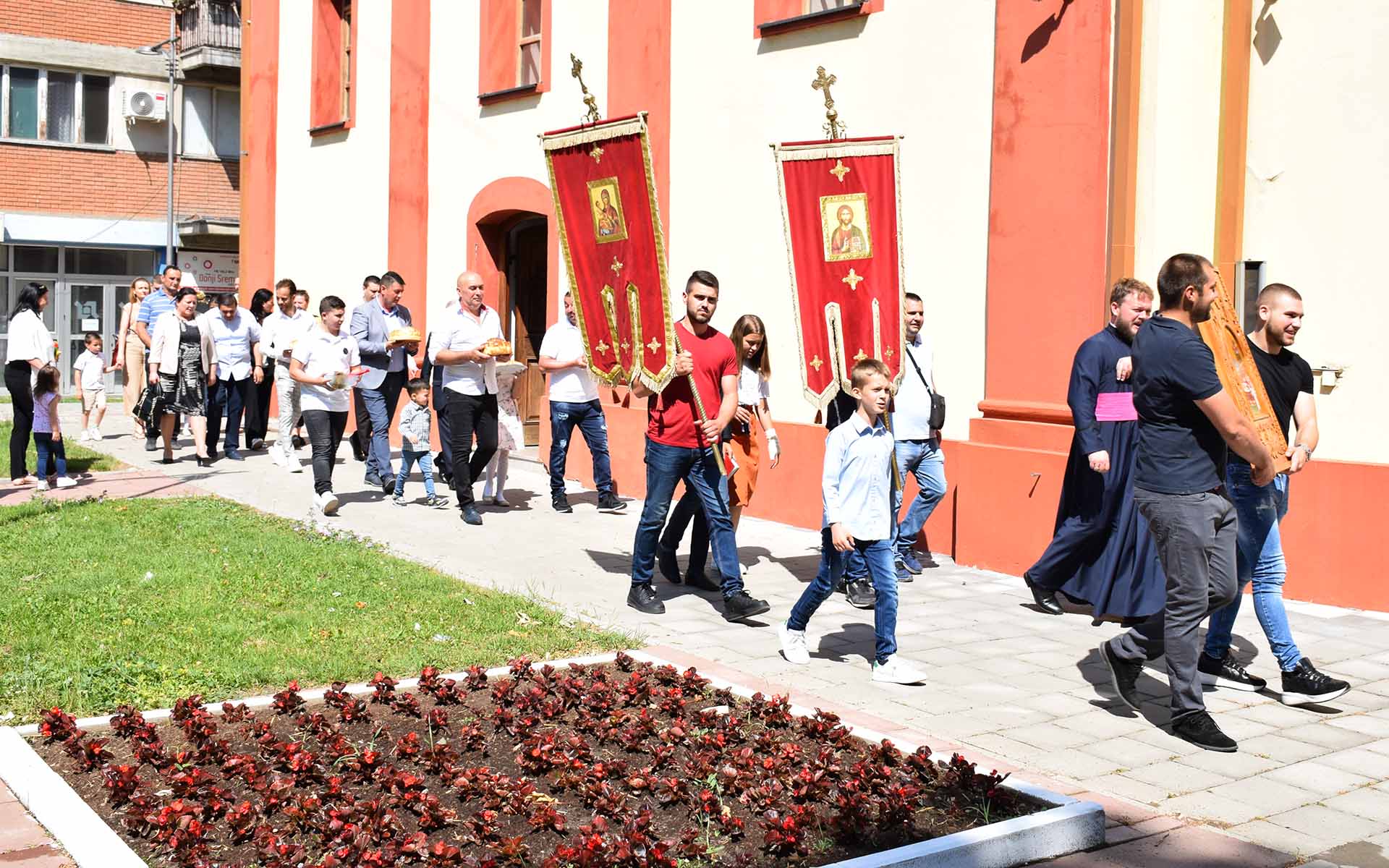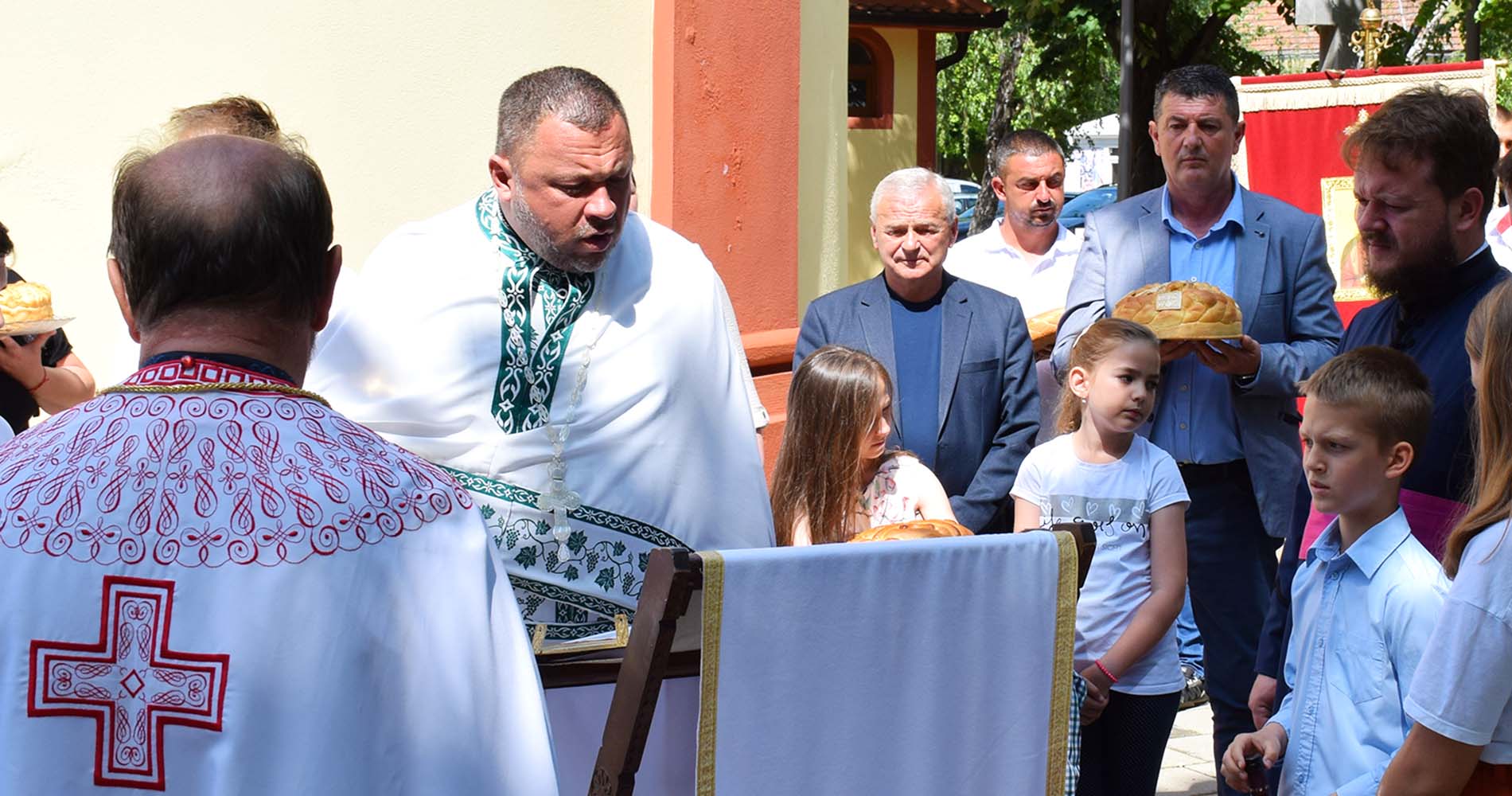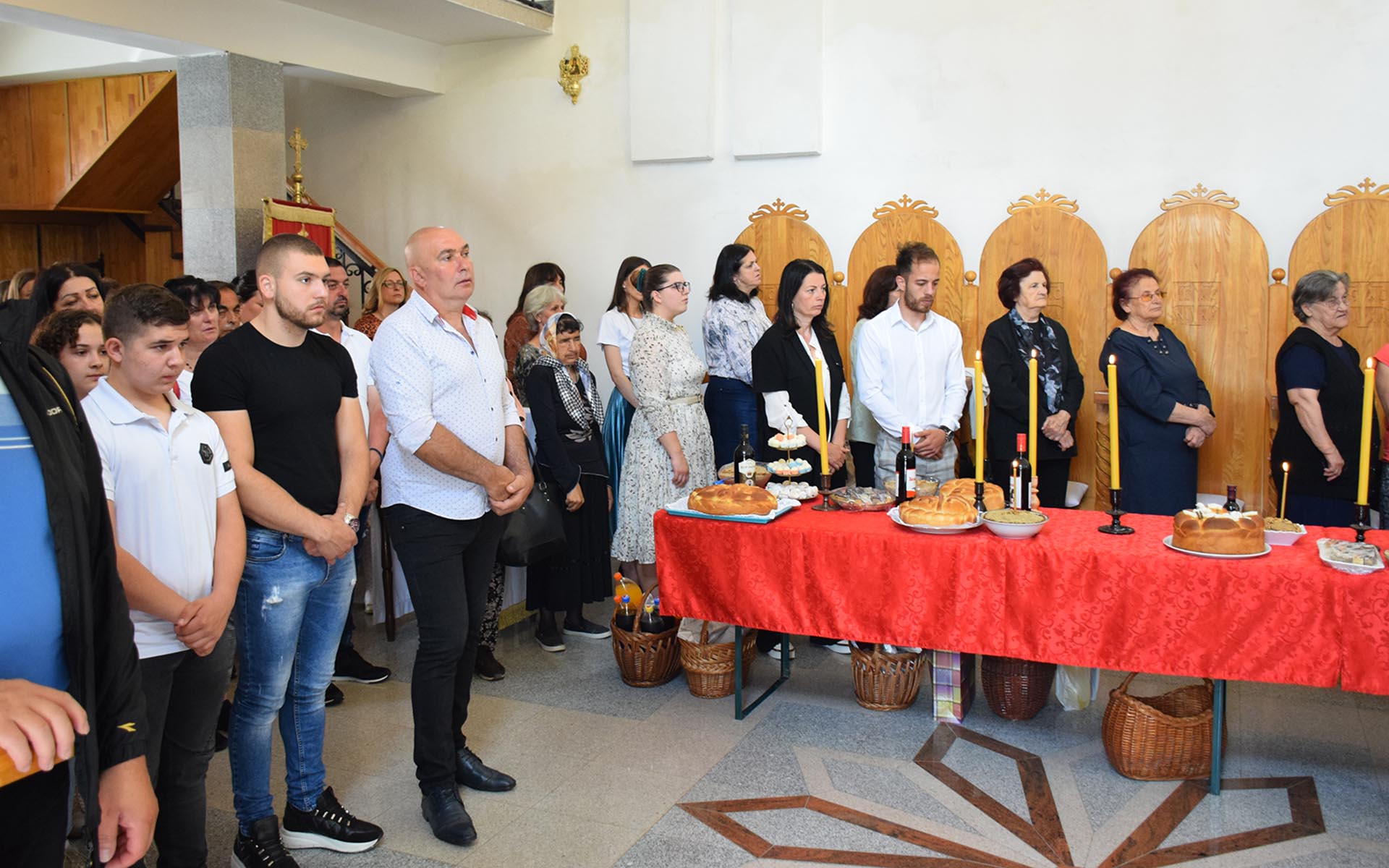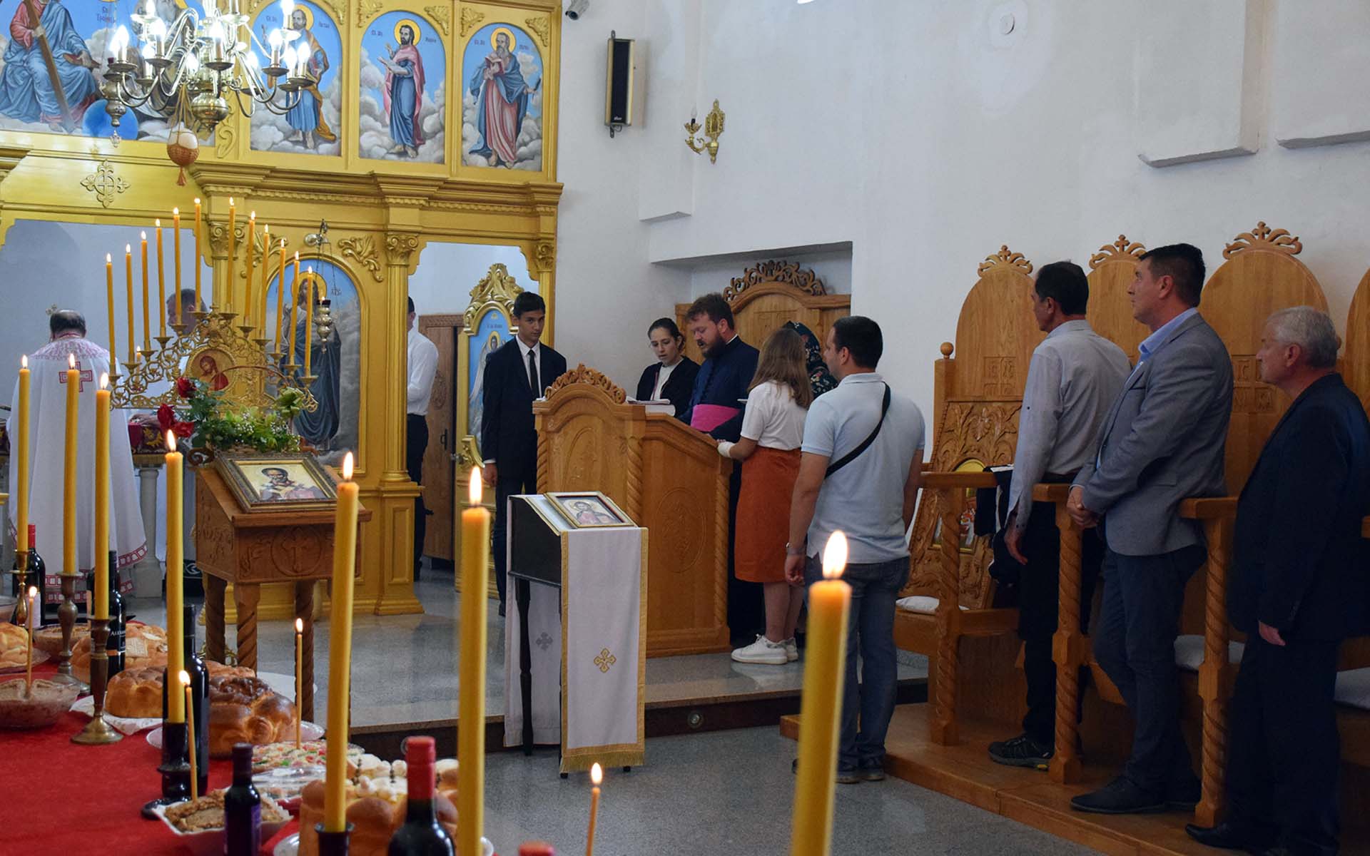 У прируству бројних верника и кумова храма, свету литургију су служили протојереј ставрофор Миле Јокић парох бусијски, протојереј ставрофор Владимир Дмитрић парох у Мачванском Метковићу и протонаменсник Предраг Антонијевић парох новопазовачки, заједно са архијерејским намесником пећиначким јерејем Бојаном Мијановићем.