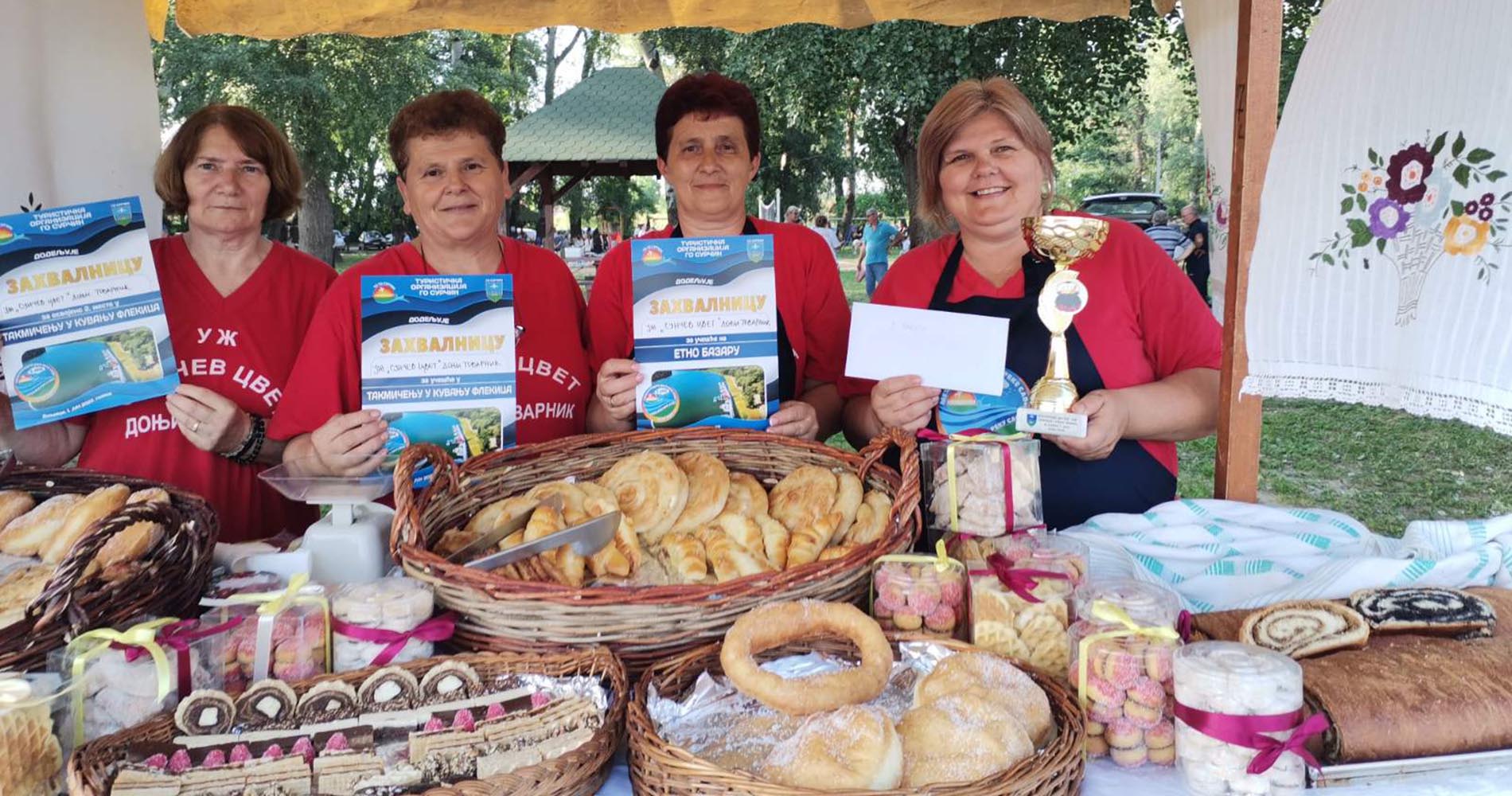Како нам је рекла Лепосава Степановић, председница товарничког удружења жена, на овој изложбено-продајној манифестацији, представиле су своје свеже умешене кифле, крофне и друге слатке и слане колаче, а учествовале су и на такмичењу у кувању флекица – традиционалног сремачког јела, где су освојиле другу награду.