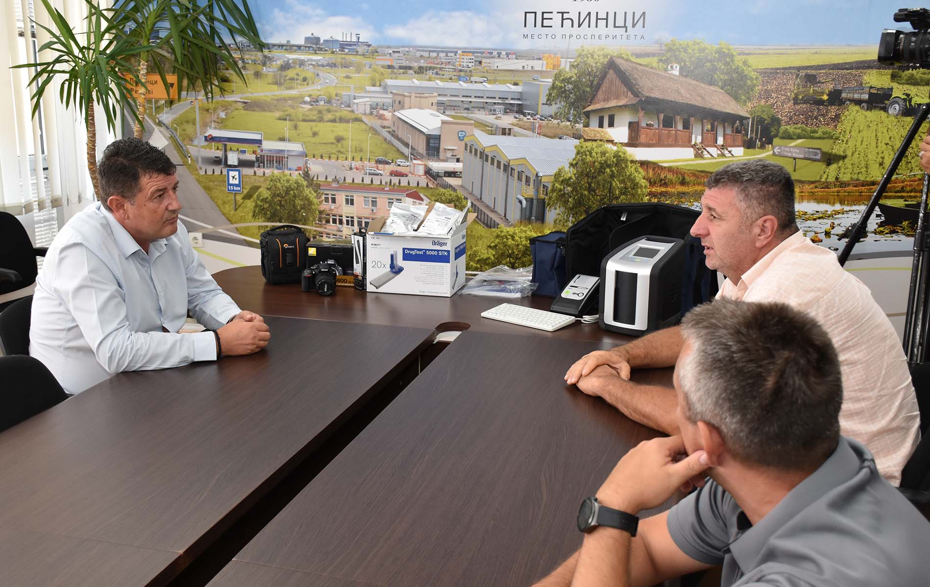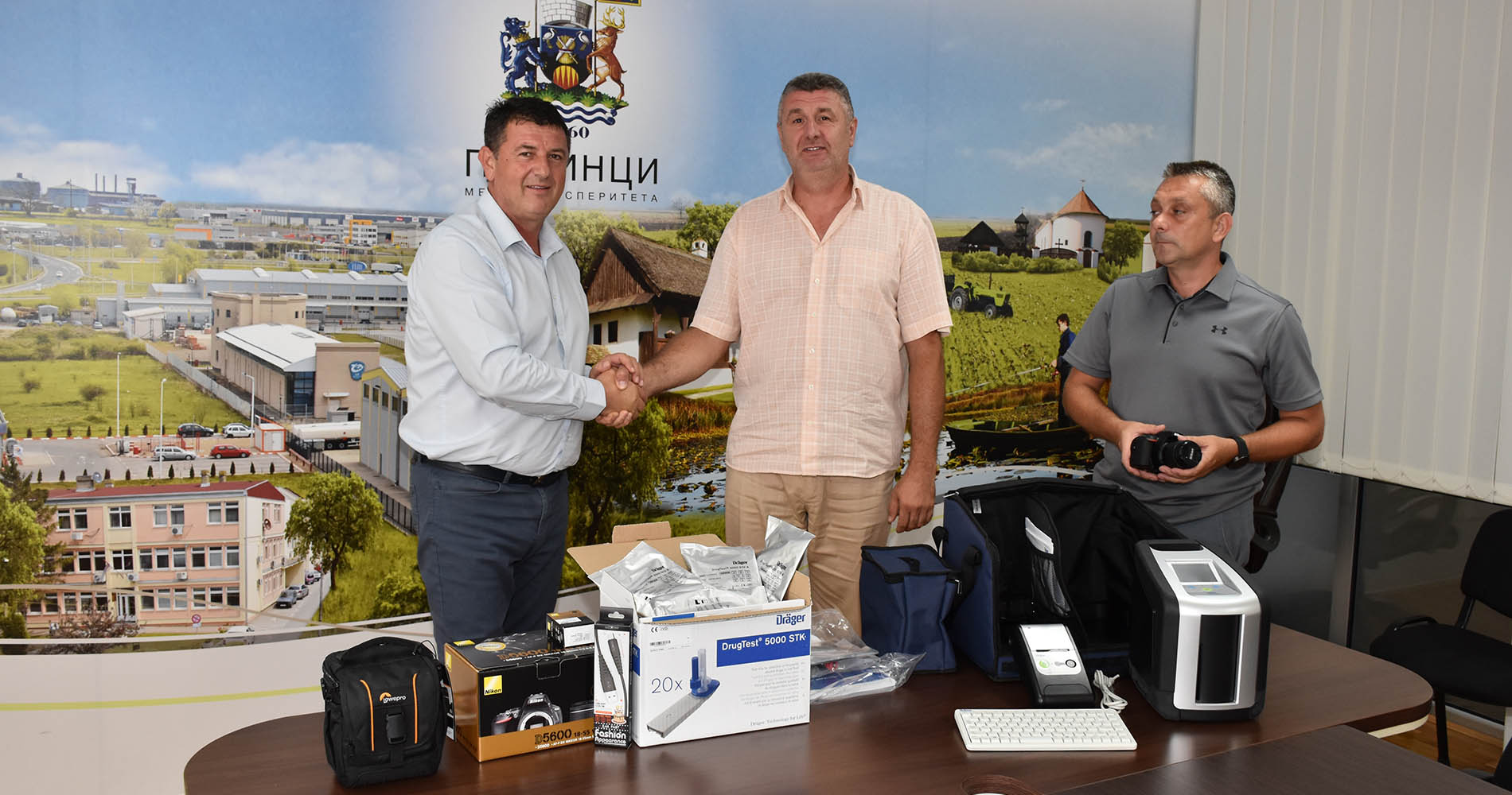Председник општине Пећинци Синиша Ђокић састао се јуче са начелником Полицијске управе Сремска Митровица Ђуром Мандићем и начелником Полицијске станице Пећинци Сашом Газибарићем. Том приликом Ђокић је представницима полиције уручио донацију у виду опреме вредне близу 600.000 динара, а реч је о тесту на присуство наркотика у организму и фото апарату.