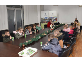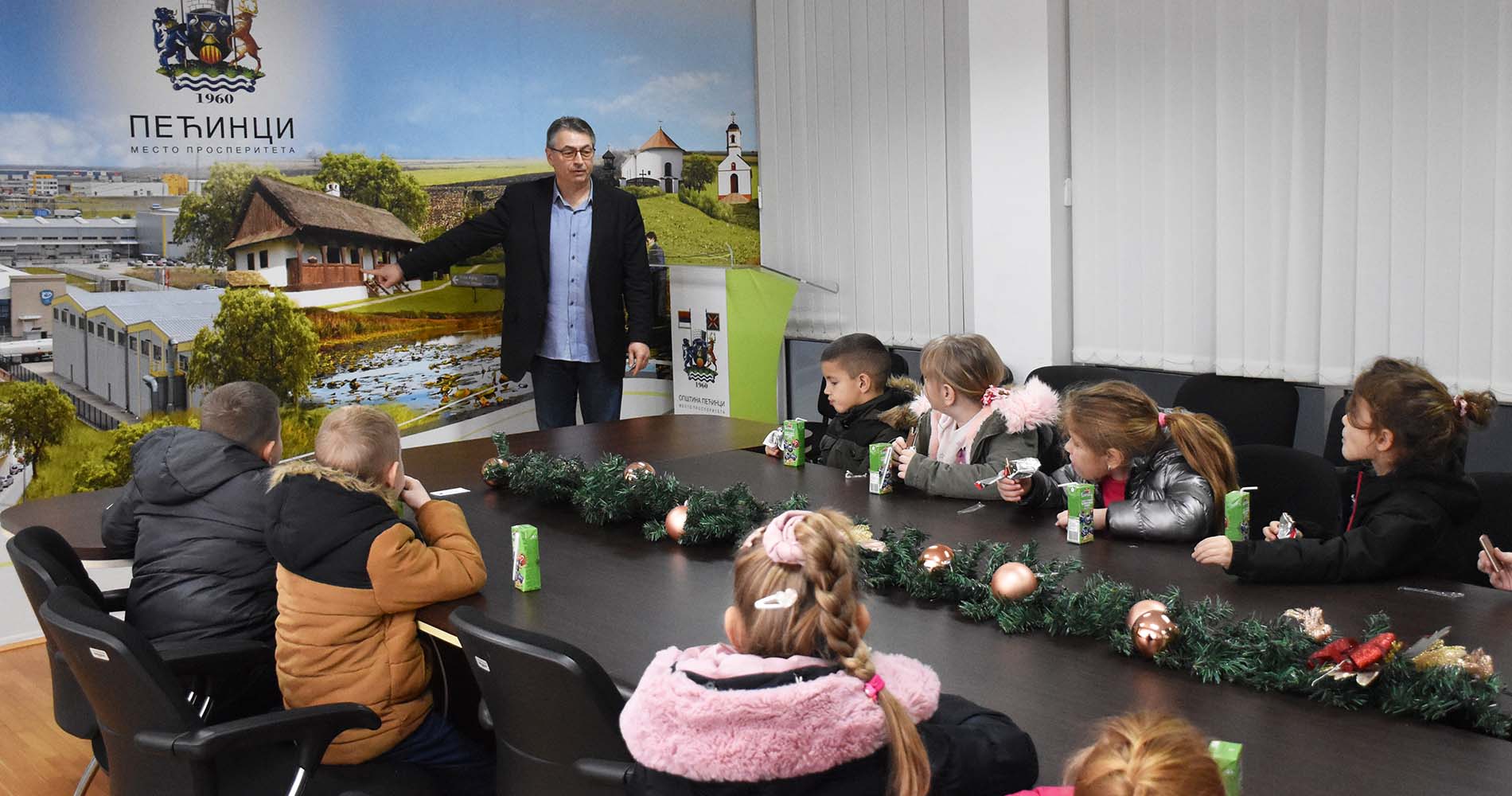 Уз чоколадице и сокиће, пажњу предшколаца држао је Душан Срећков из општинске Службе са односе са јавношћу, који их је упознао са грбом Општине Пећинци и његовим значењем, као и са значајним индустријским, природним, социјалним и културним обележјима пећиначке општине.