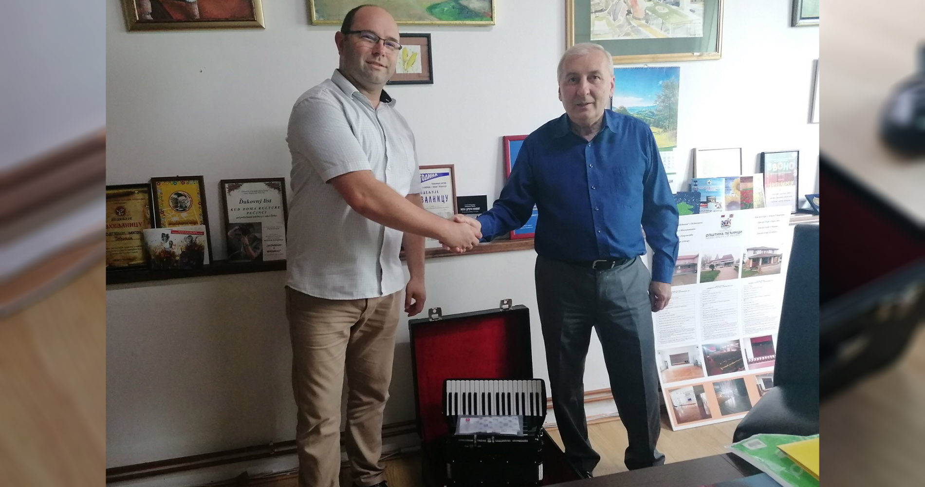 Директор Културног центра Пећинци Јован Деврња уручио је недавно директору музичке школе “Теодор Тоша Андрејевић” у Пећинцима Дарку Ђокићу нову хармонику италијанске израде, марке Пигини Петер Пан, за коју је средства обезбедила пећиначка локална самоуправа.
