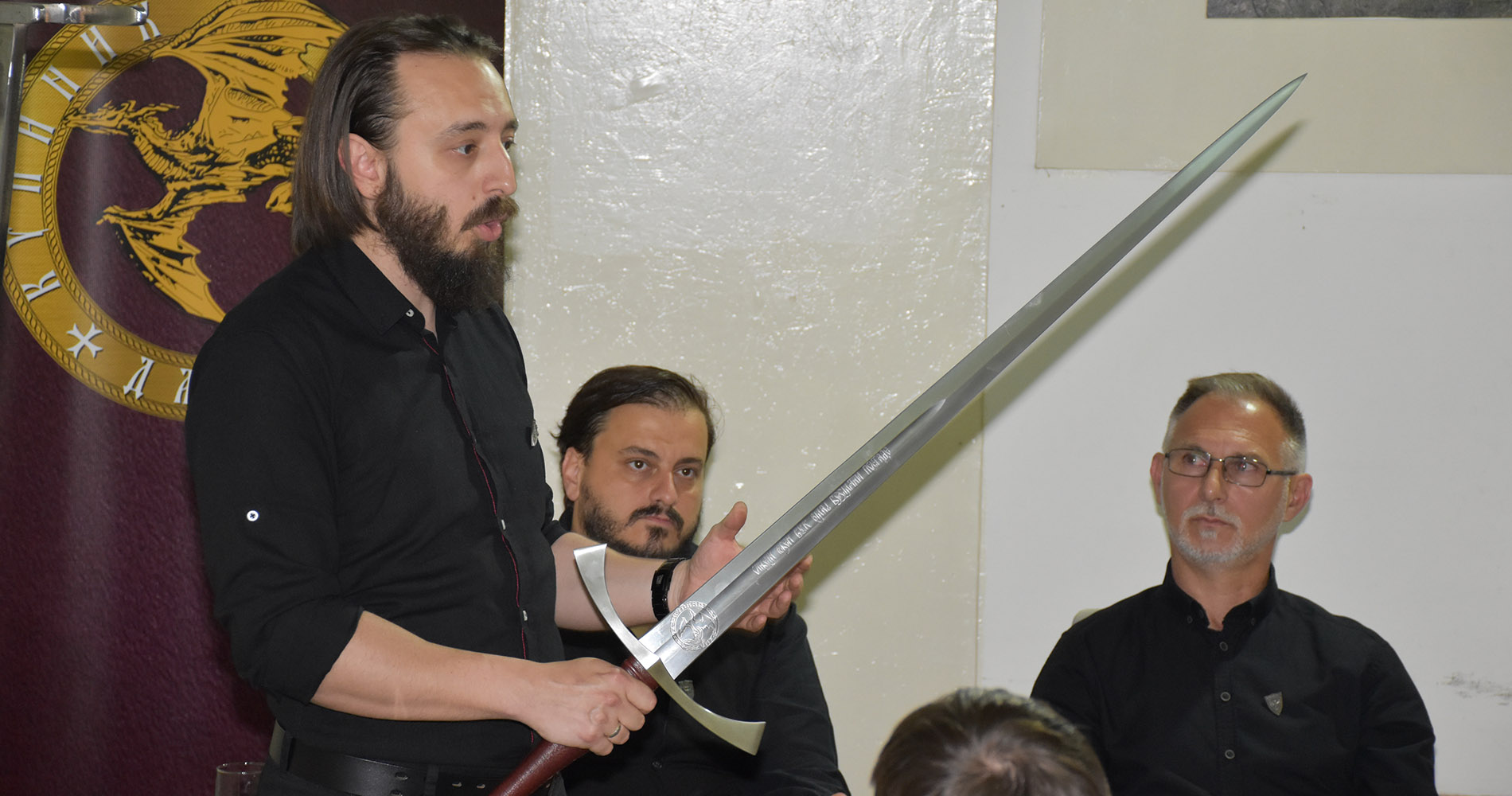 И управо је о витештву, етици и мачу, на промоцији говорио специјалан гост наш глумац Иван Вучковић, који је у серијалу „Српски јунаци средњег века“ својом глумом оживео лик Вука Гргуревића Бранковића, легендарног Змаја Огњеног Вука.