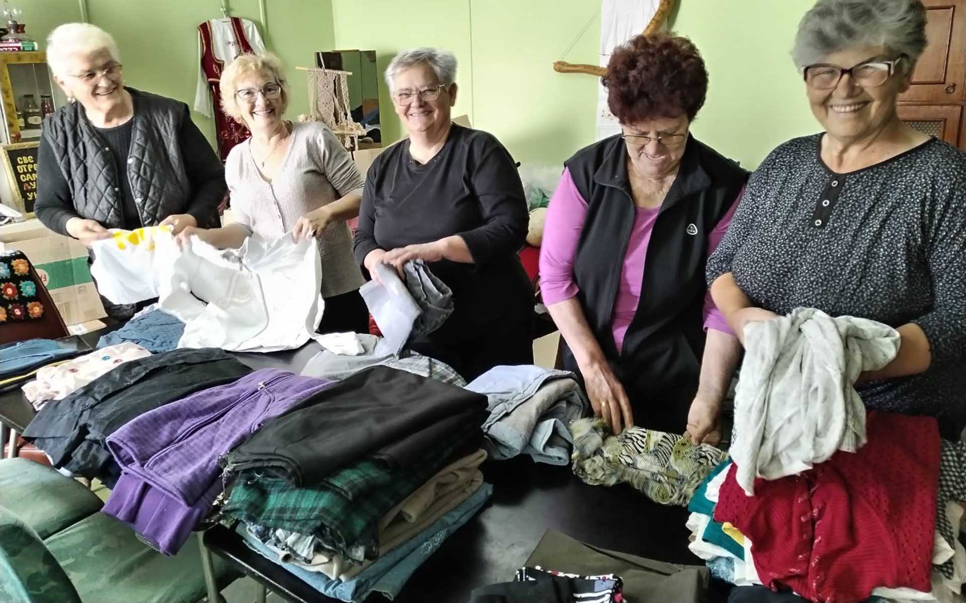 Како нам је рекла Гордана Коњевић, секретар пећиначког ЦК, удружења жена су веома активне и редовно прикупљају веће количине половне одеће и обуће, а недавно је Удружење жена “Колевка Срема” из Пећинаца испоручило 30 кутија уредно сложене и опране гардеробе за децу и одрасле. Она додаје, и да су и чланови Месне заједнице Огар такође веома активни у хуманитарном раду, те су прикупили опрему за бебе као што су колица, носиљке и хранилице, али и 15 кутија коришћене гардеробе углавном за децу.