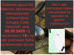 Ловачко друштво Брестач у петак, 2. маја, организује трећу Меморијалну шицару „Сава Николић Змај“, у знак сећања на дугогодишњег члана овог друштва. И ове године прикупљена средства биће донирана у хуманитерне сврхе.